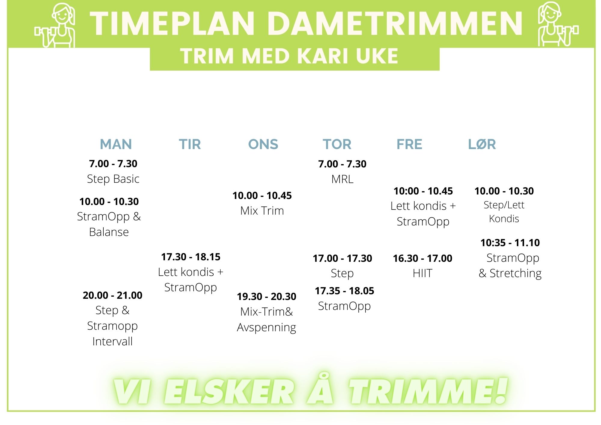 DAMETRIMMEN er her FOR DEG og DIN HELSE og VELVÆRE er FØRSTE PRIORITET!
